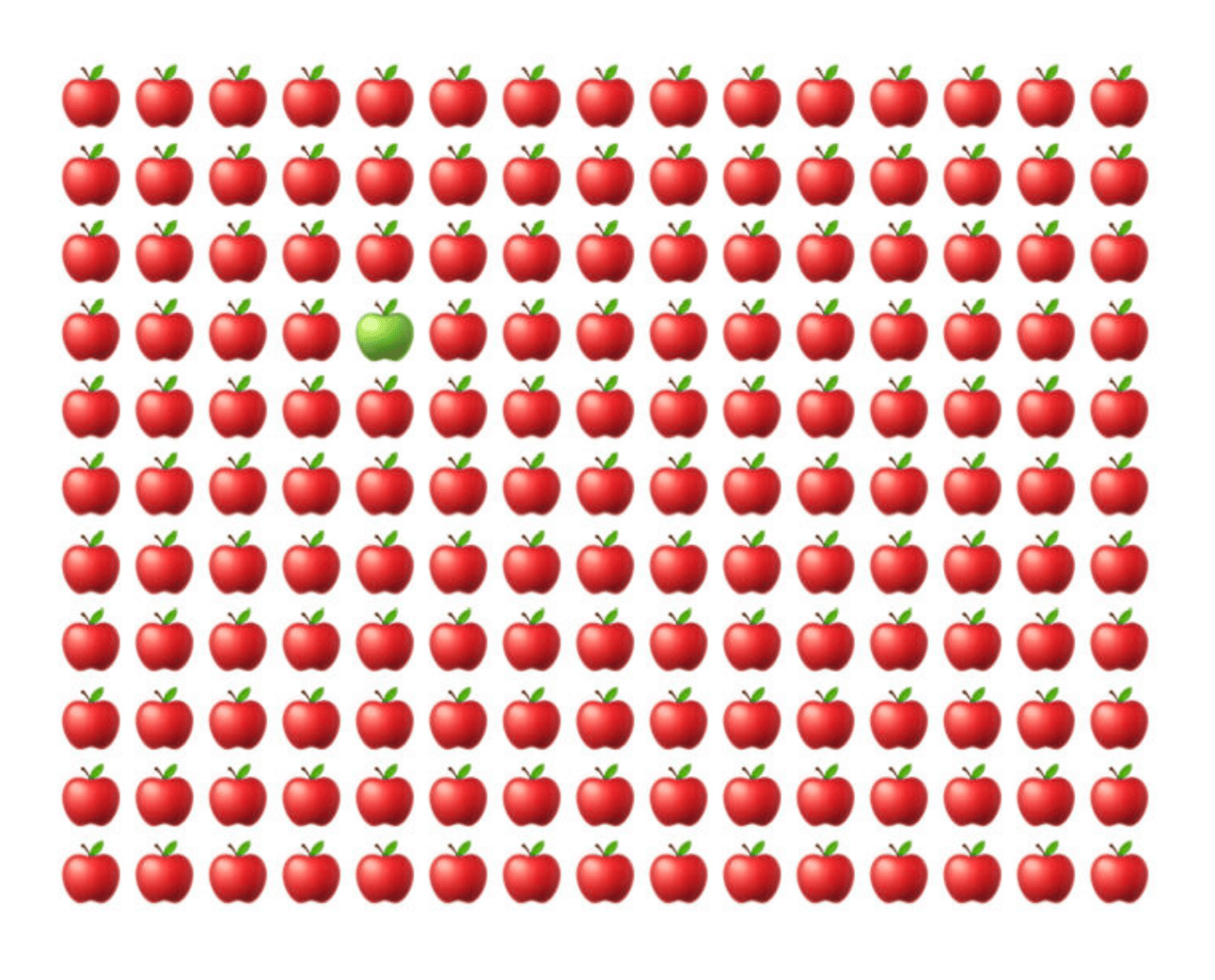 We all see color. The system demands it. We have all seen posters of 99 red apples and 1 green apple.